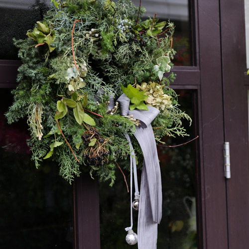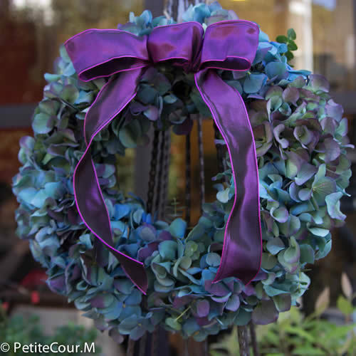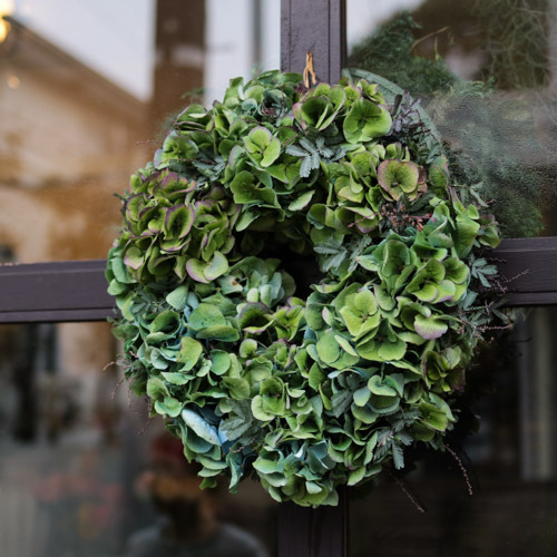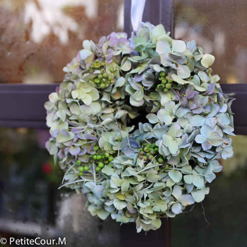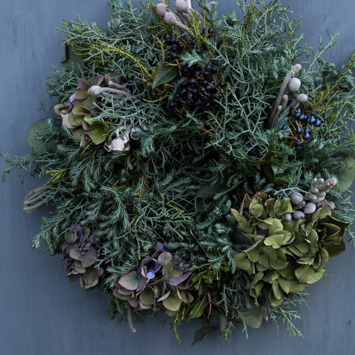 クリスマス・デコレーション[クリスマス紫陽花フレッシュリース]サイズの目安:Φ約38cm(サンプル画像)秋冬限定,ご注文後製作納品(最短一週間以内お届け)