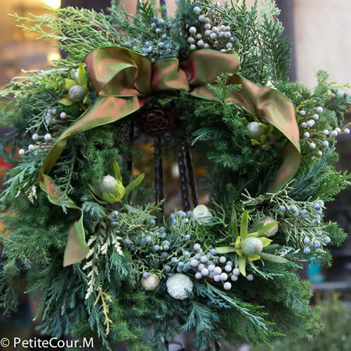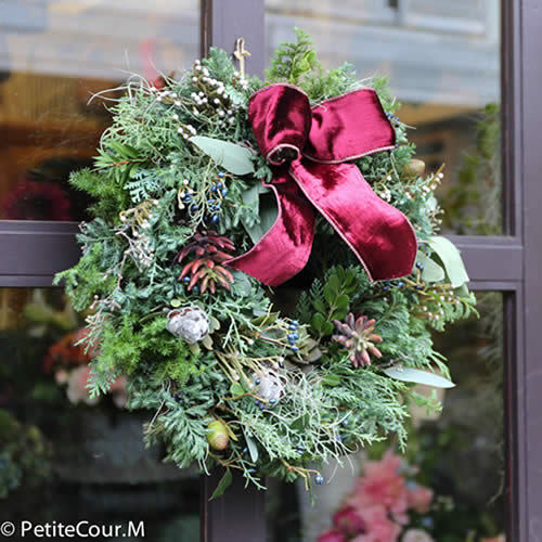 クリスマス・デコレーション[クリスマスフレッシュリース]サイズの目安:Φ約38cm(サンプル画像)秋冬限定,ご注文後製作納品(最短一週間以内お届け)(税込価格)〜