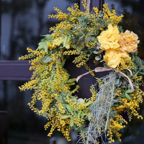 ミモザリース サイズの目安:Φ約30cm(サンプル画像)1−2月限定,ご注文後製作納品(最短一週間以内お届け)