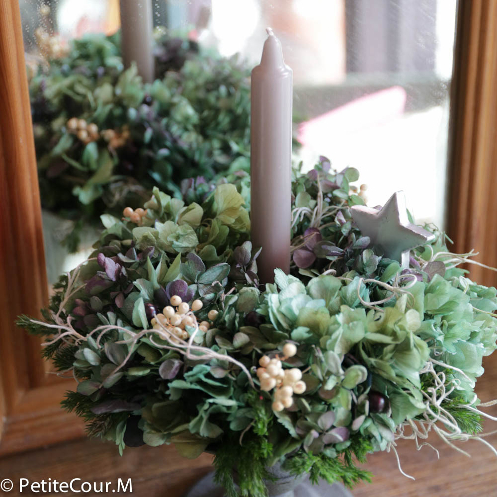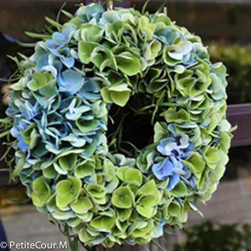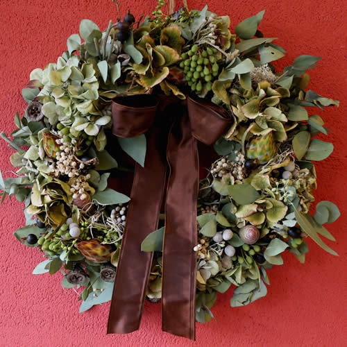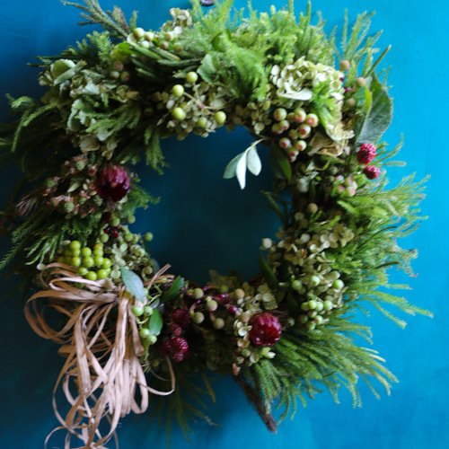 クリスマス・デコレーション[クリスマス紫陽花フレッシュリース]サイズの目安:Φ約38cm(サンプル画像)秋冬限定,ご注文後製作納品(最短一週間以内お届け)