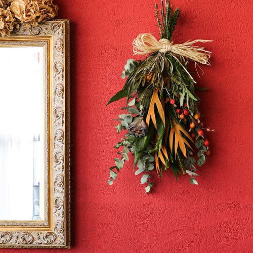 クリスマス・デコレーション[クリスマスドライリース]サイズの目安:Φ約38cm(サンプル画像)秋冬限定,ご注文後製作納品(最短一週間以内お届け)